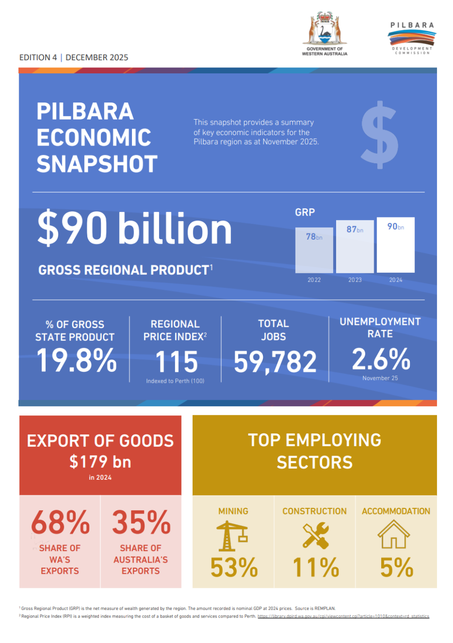 This series summarises the economic output of the Pilbara region, including key industries, exports, jobs and GRP.