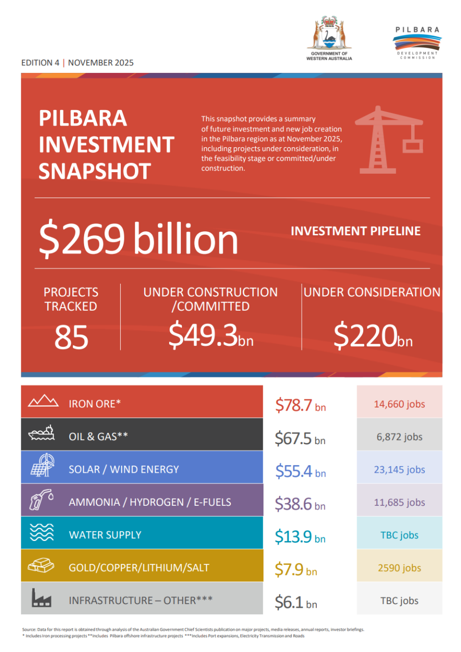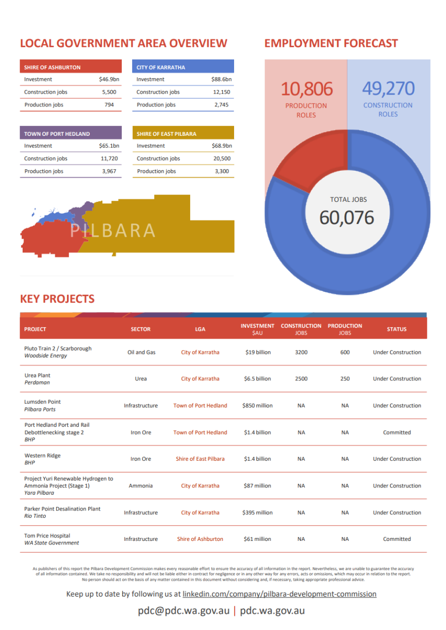 This series summarises future investment and job creation data in the Pilbara region, including projects that are under consideration, committed or are already under construction.